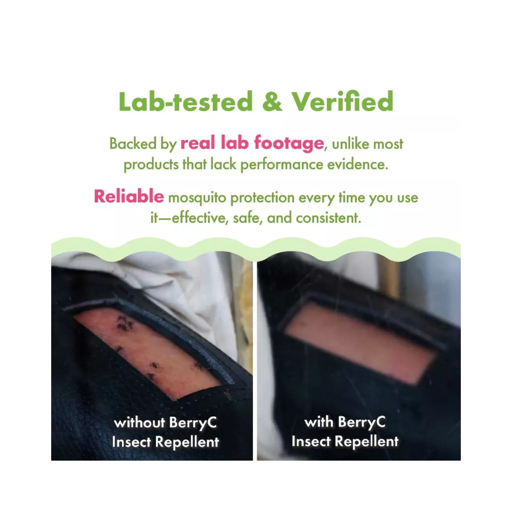 BerryC Insect Repellent can provide total protection from 🦟 insects for up to 🕑2 hours upon spraying. You can easily re-spray the 🦟 insect repellent to provide perfect protection from 🦟 insects again.