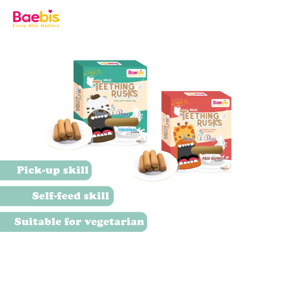 Teething Rusks encourage biting, chewing for gum and jaw development. It may help for swollen and tender gums. Development of babyβs first teeth.