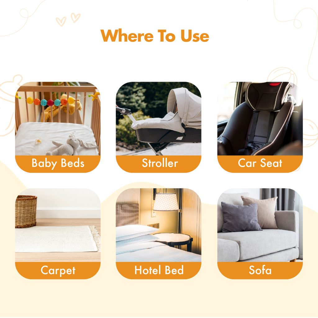 A baby-safe solution for all fabric surfaces. Infused with a calming lavender scent, it repels bed bugs and mites for up to 10 hours, leaving no stains. Crafted with natural ingredients, free of harmful chemicals. It offers effective antibacterial and deodorizing properties, ensuring your baby’s environment is both clean and fresh. Safe for use on beds, sofas, strollers, carpets, mattresses, and baby car seats, BerryC allows instant surface contact after spraying, making it ideal for busy families.