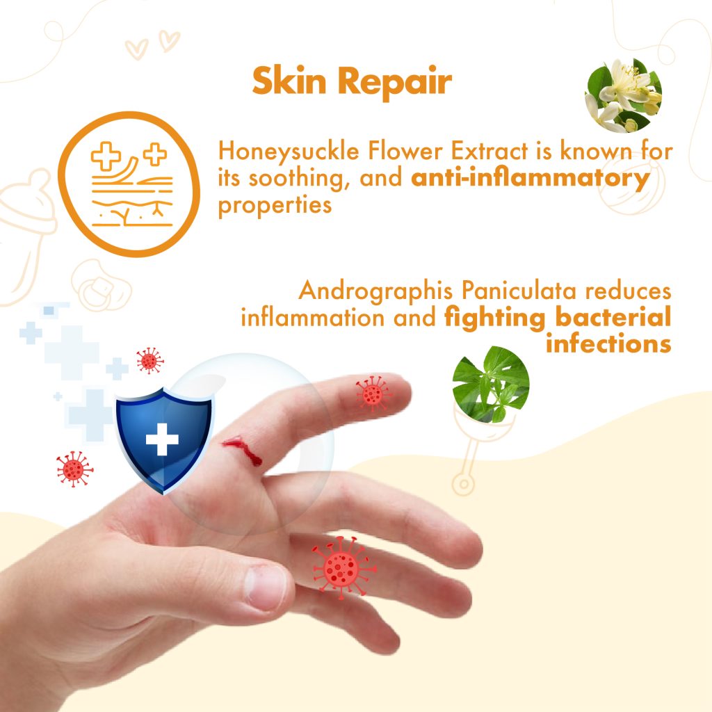 A gentle, moisturizing cleanser in creamy foam which ideal for sensitive skin and accelerating skin repair, including minor cuts. Safe for babies and suitable for adults, it’s enriched with anti-oxidant and made with natural origin ingredients. This soap-free formula effectively kills 99.99% of germs and bacteria, while its antioxidant properties and anti-inflammatory benefits maintain pH balance. Perfect for daily use, BerryC ensures clean, nourished, and rapidly healing skin for the whole family.
