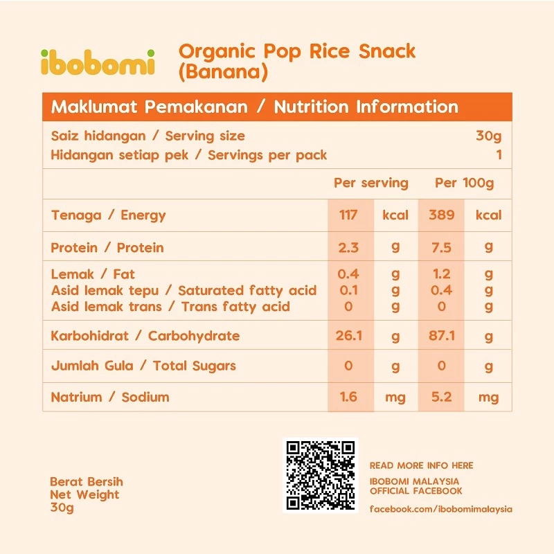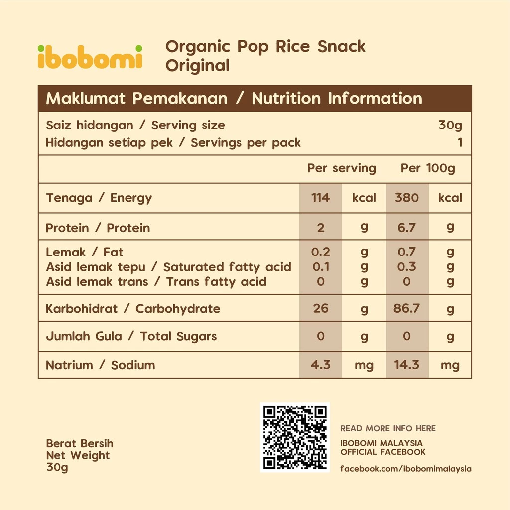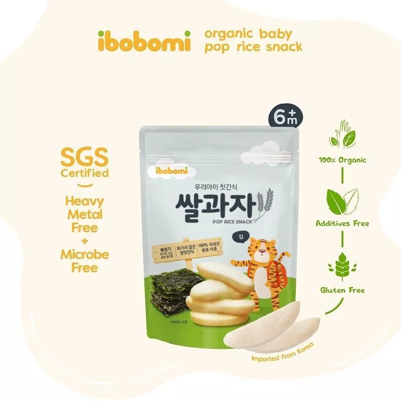 IBOBOMI means “Baby Kisses Rice” in Korean — a name that reflects the brand’s love and care for every little one. Korea Ibobomi Pop Rice Snack suitable for babies over six (6) months. It is a healthy rice snack that helps babies learn and grow ! Perfect for babies just started on solids.