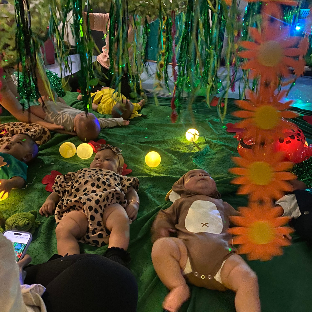 A hands-on class for babies starting to crawl, grasp, and interact. Each session includes music, puppet shows, sensory circuits, and messy play that support movement, communication, and early learning.