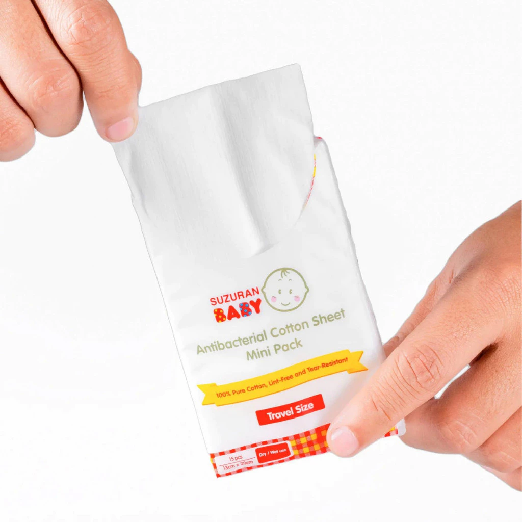 Antibacterial Cotton Sheet is now available in Mini Pack for parents who are always on-the-go. Made in travel friendly size so you can easily carry it in your mommy bag, diaper bag or even pockets.